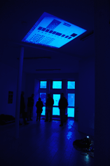 10 pure sine waves, in Logarithmically scaled measures, based on a fundamental of 31hz this being the fundamental wavelength of the largest dimension of the gallery, were played into the gallery, with no modulation or variation, a direct sonic translation of space.